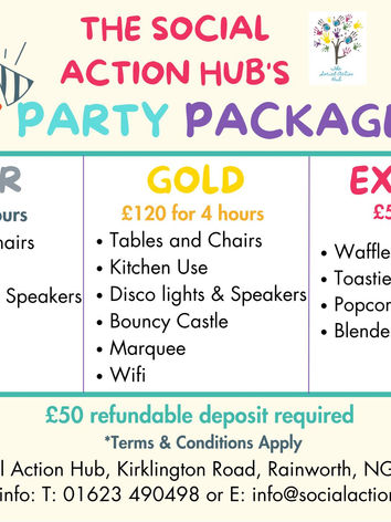 We offer venue hire and party packages upon request with different payment tiers based on package styles.
